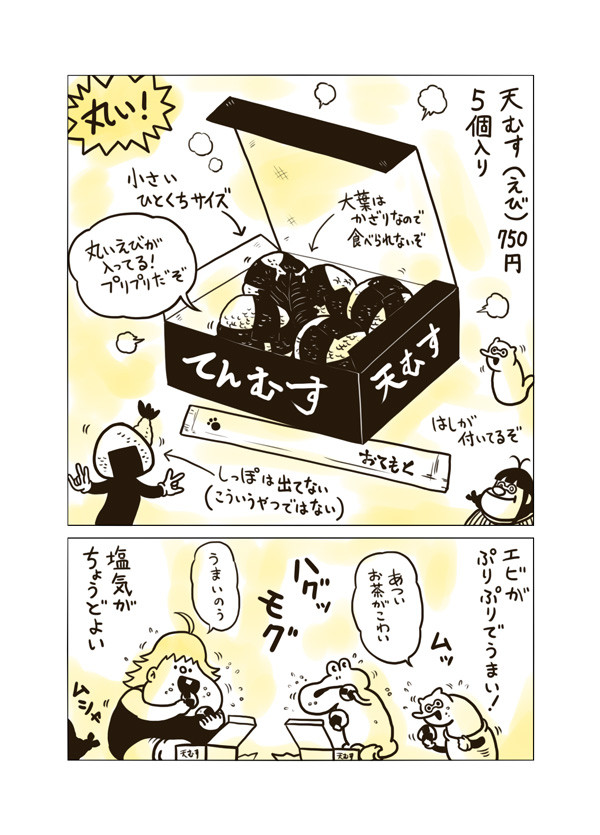 2013-11-21 なの!!!!!大阪福島区のおにぎり専門店でおいしい「天むす」を食べる レポまんが ゆかい食堂 大阪市福島区にある、おにぎり専門店「天むす すえひろ 本店」に行ってきました。 あとで調べたら、おにぎり弁当によく入ってる茶色いアレは「きゃらぶき」という名前でしたね。てんむすおいしいです リンク 天むす・すえひろ 天むす すえひろ 本店 てんむす すえひろ - 新福島/おにぎり [食べログ]